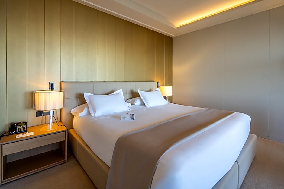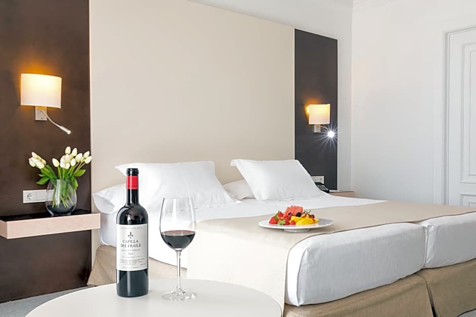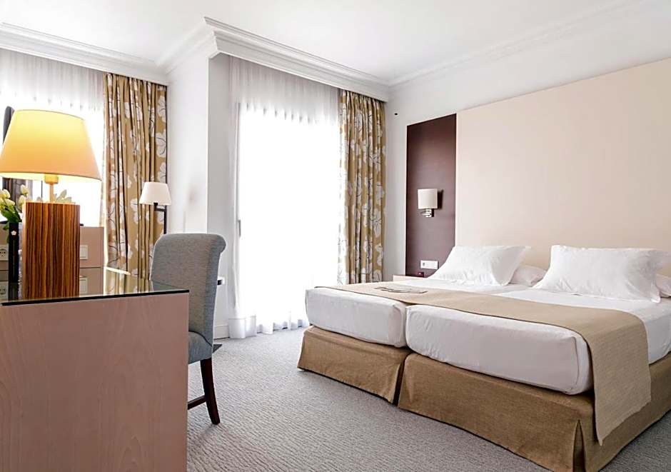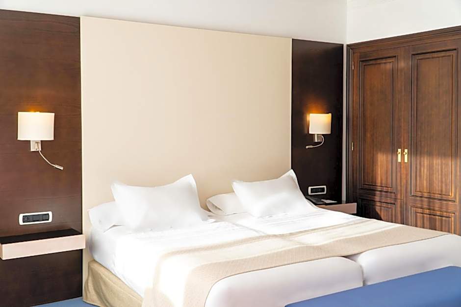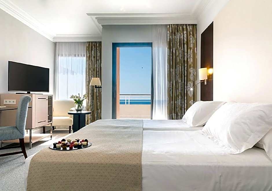 This double room features views of Palma Cathedral, the Bellver Castle and the bay. It has a seating area and a desk.